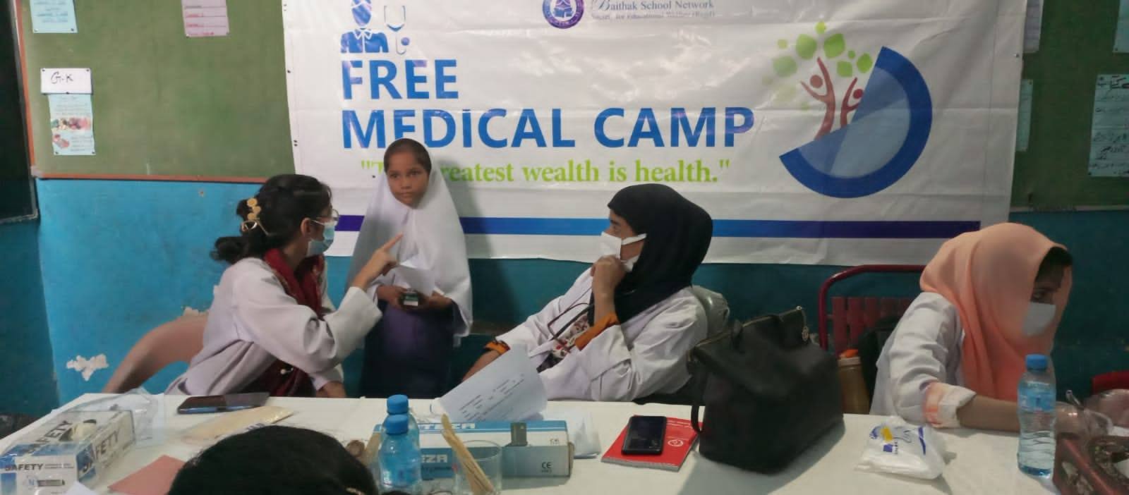 September, 2025 : A team of nine doctors from the Pakistan Islamic Medical Association (PIMA) conducted a full-scale health screening at Baithak School Network’s Lines Area Campus, delivering essential medical services to students and staff.
